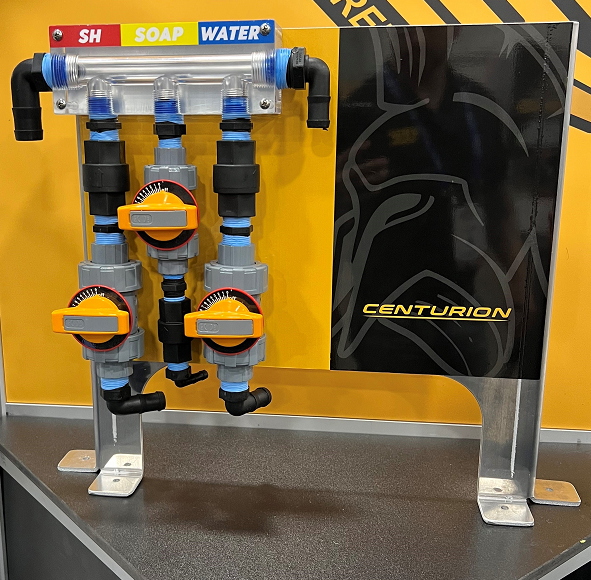 - Three ¾” Precision Metering Valves deliver maximum flow and fine-tuned chemical control